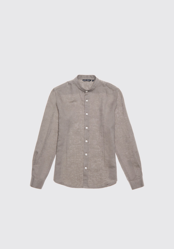 camicia manica lunga in lino con collo coreano