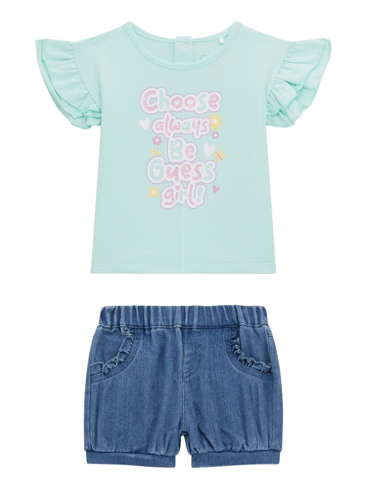 Completino pantaloncino jeans morbido con t shirt
