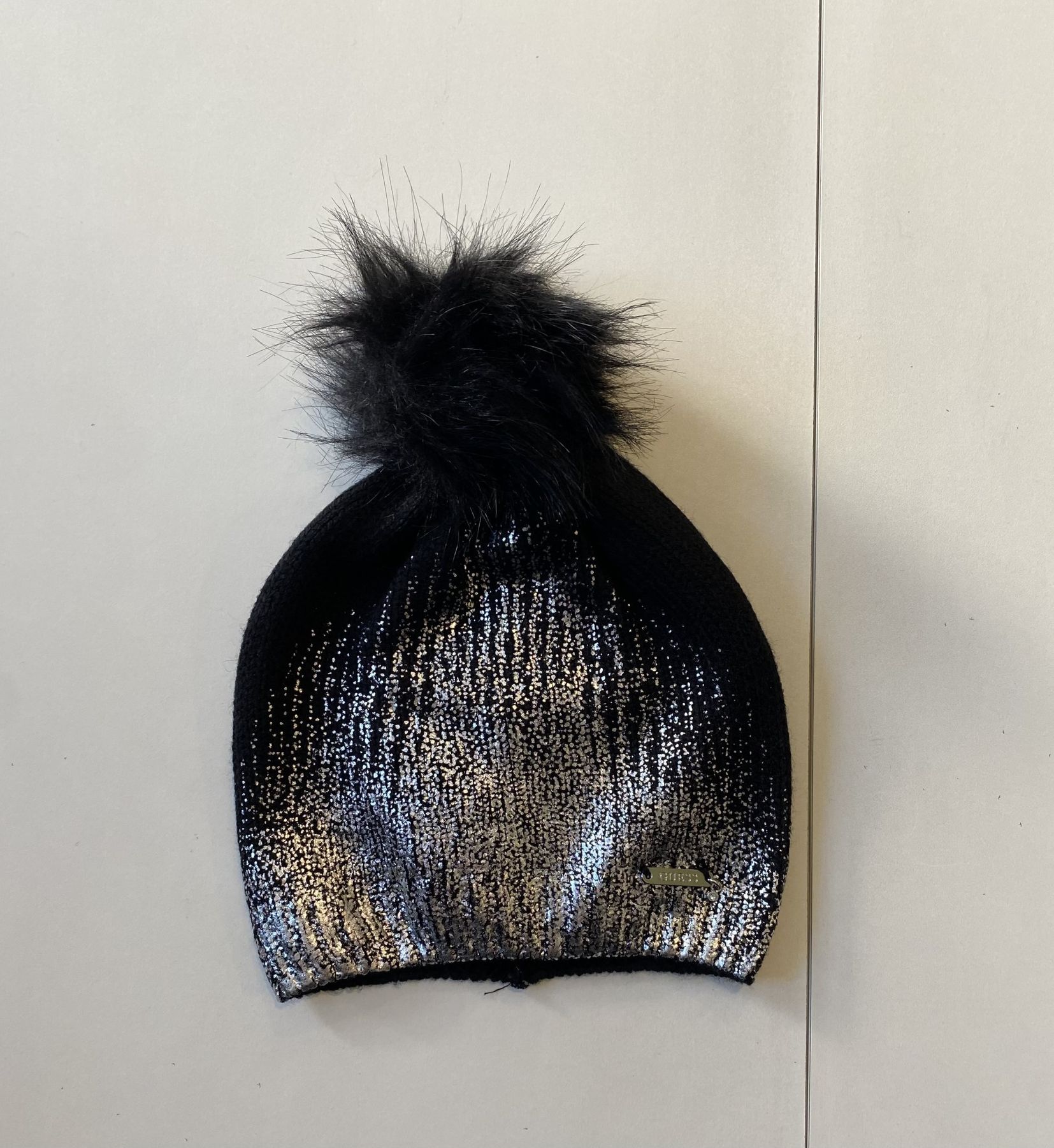 cappello con pon pon nero e argento