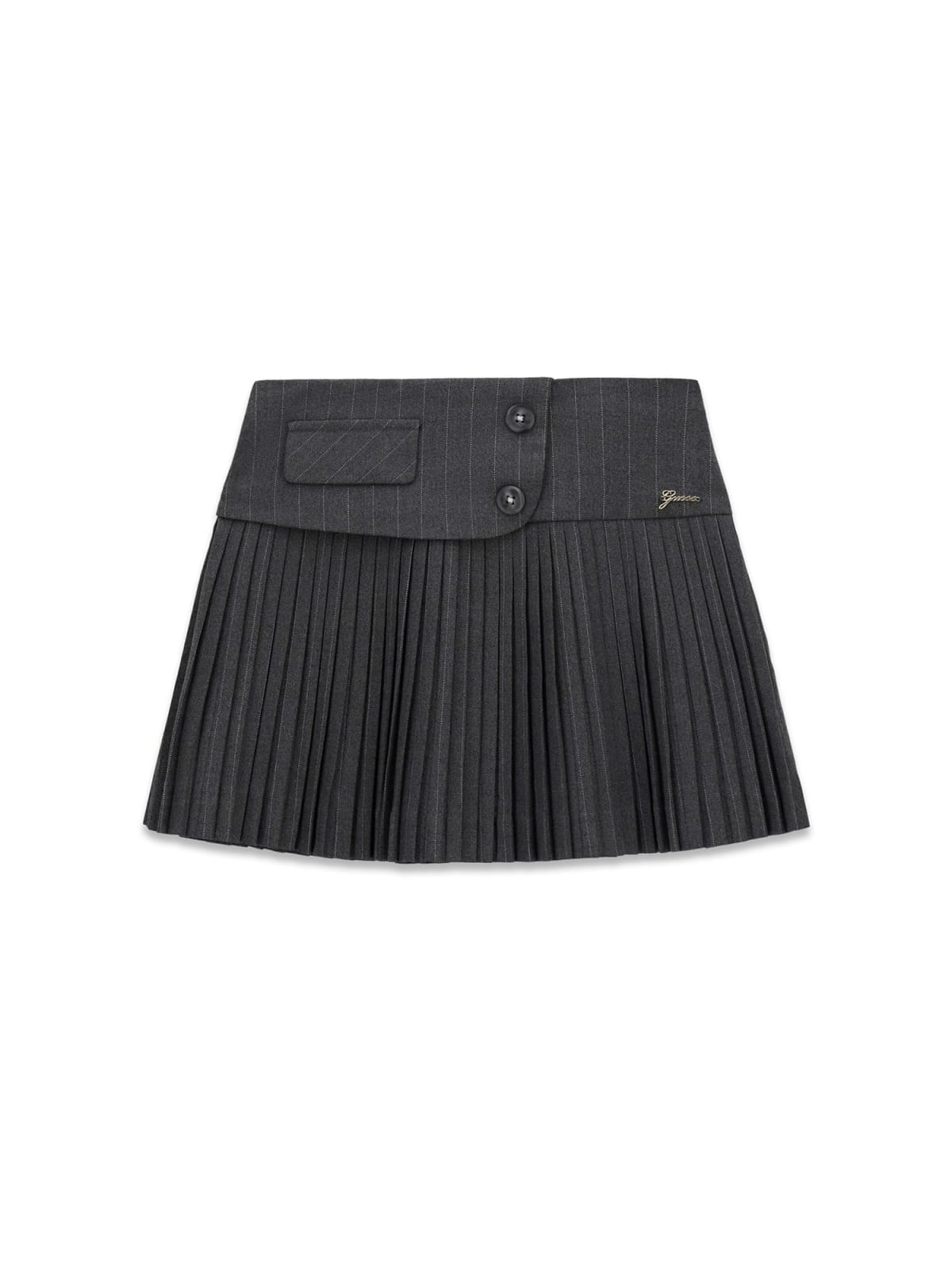 Gonna con bustino liscio e sotto a pieghe tessuto gessato