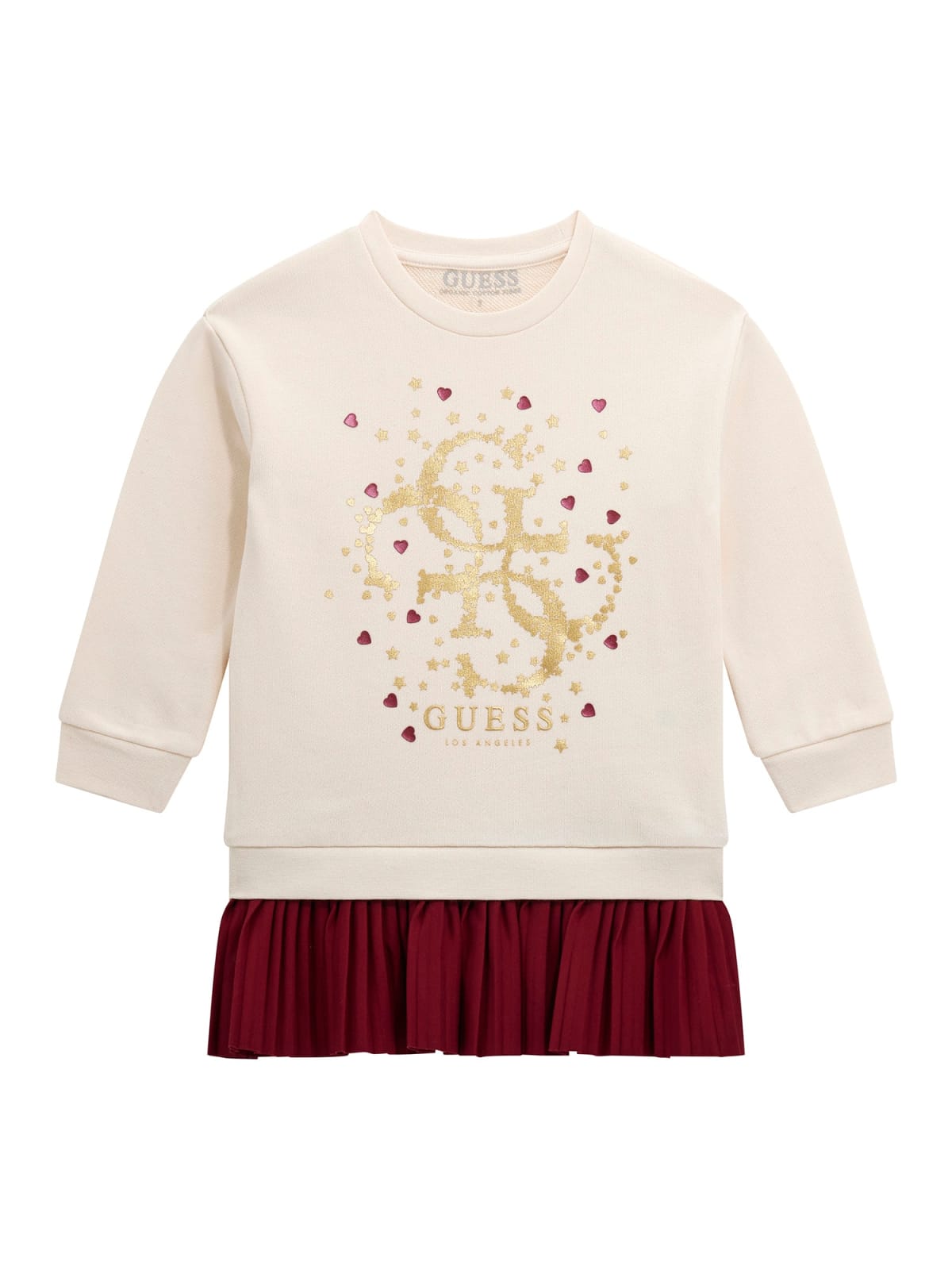 Abitino in felpa garzata panna con logo dorato e plissettato bordò estremità