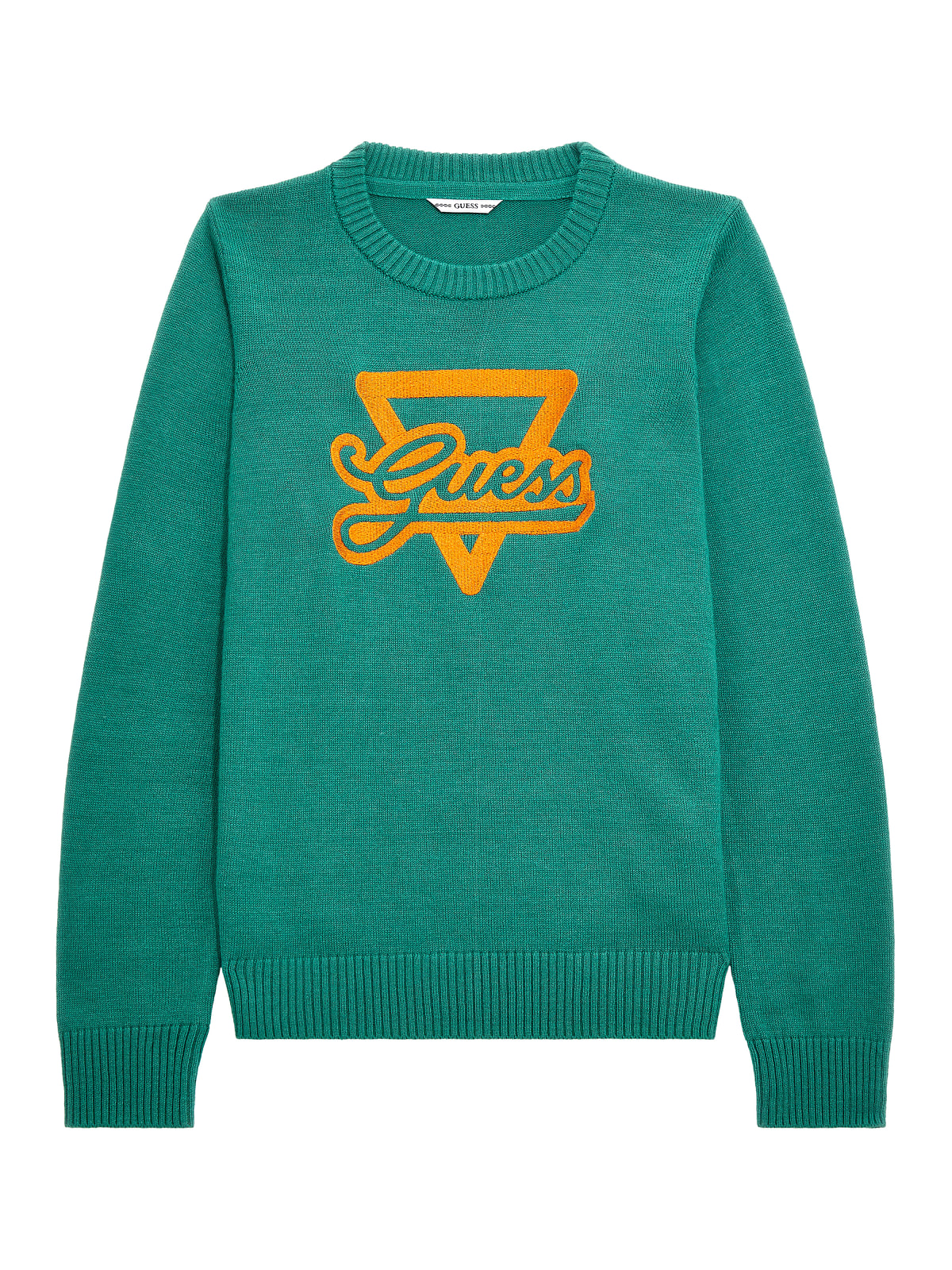 maglioncino in cotone verde con logo arancio