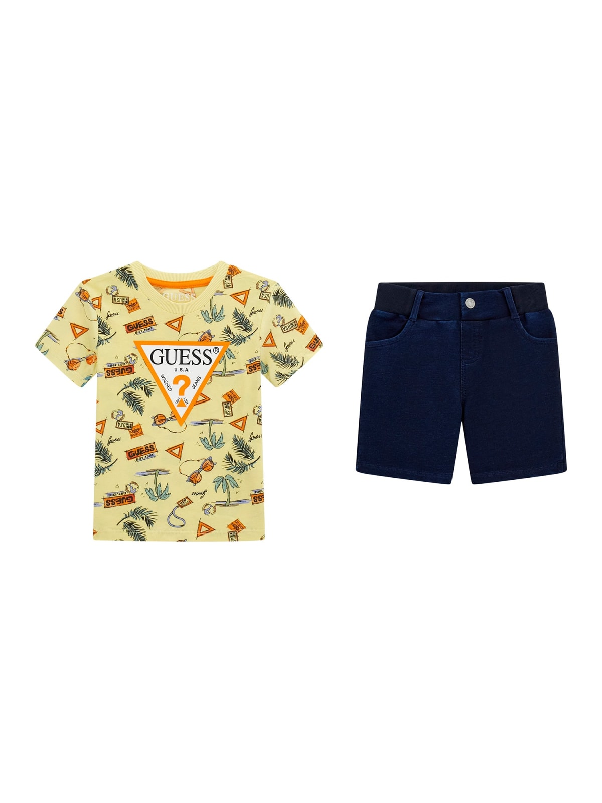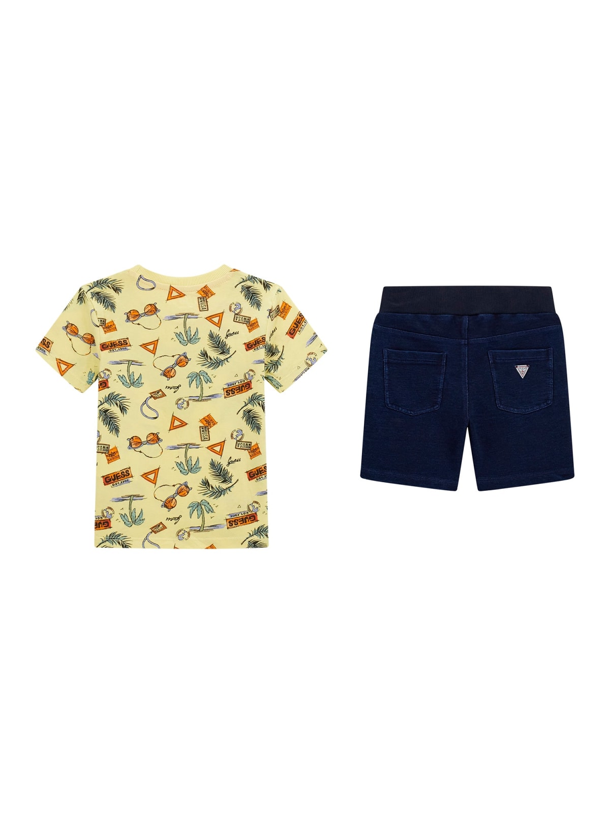 Completino pantaloncino di jeans morbido con bottone più t shirt disegnata