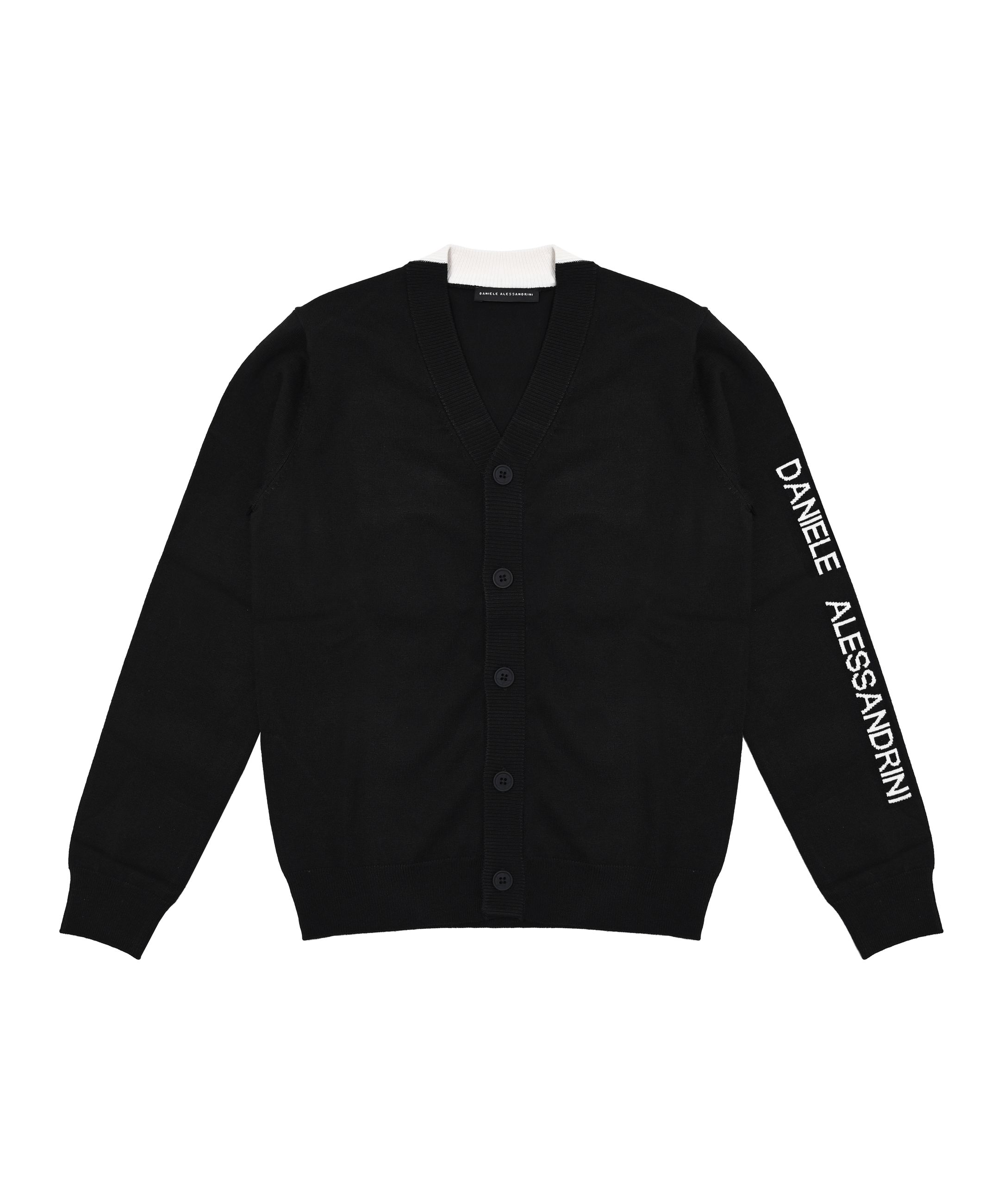 Cardigan rasato nero con logo bianco sulla spalla