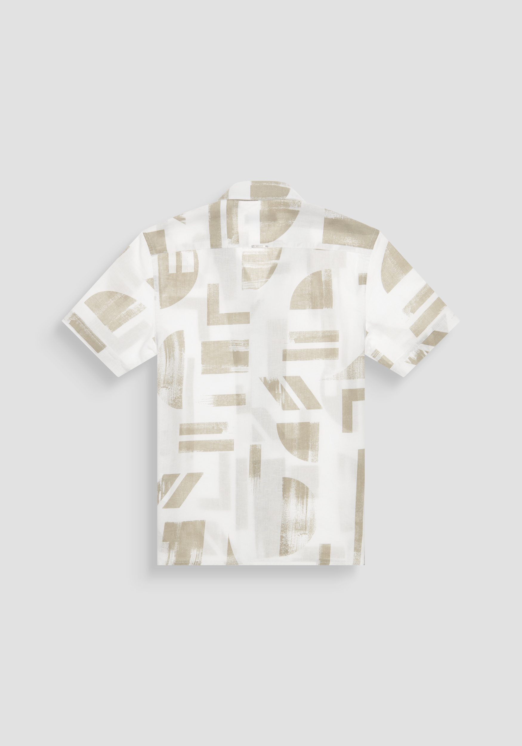 Camicia cotone e lino mezza manica con collo sciallato fantasia