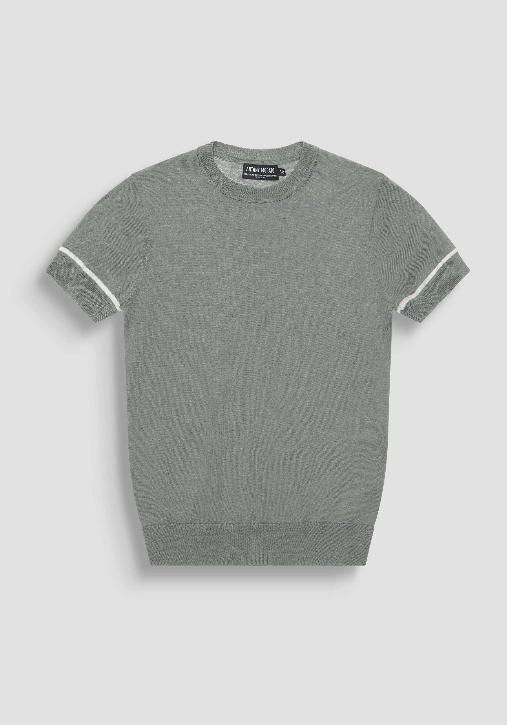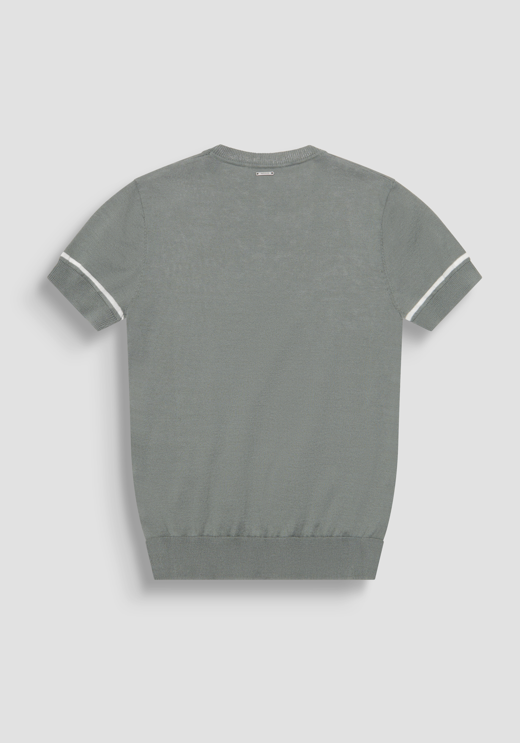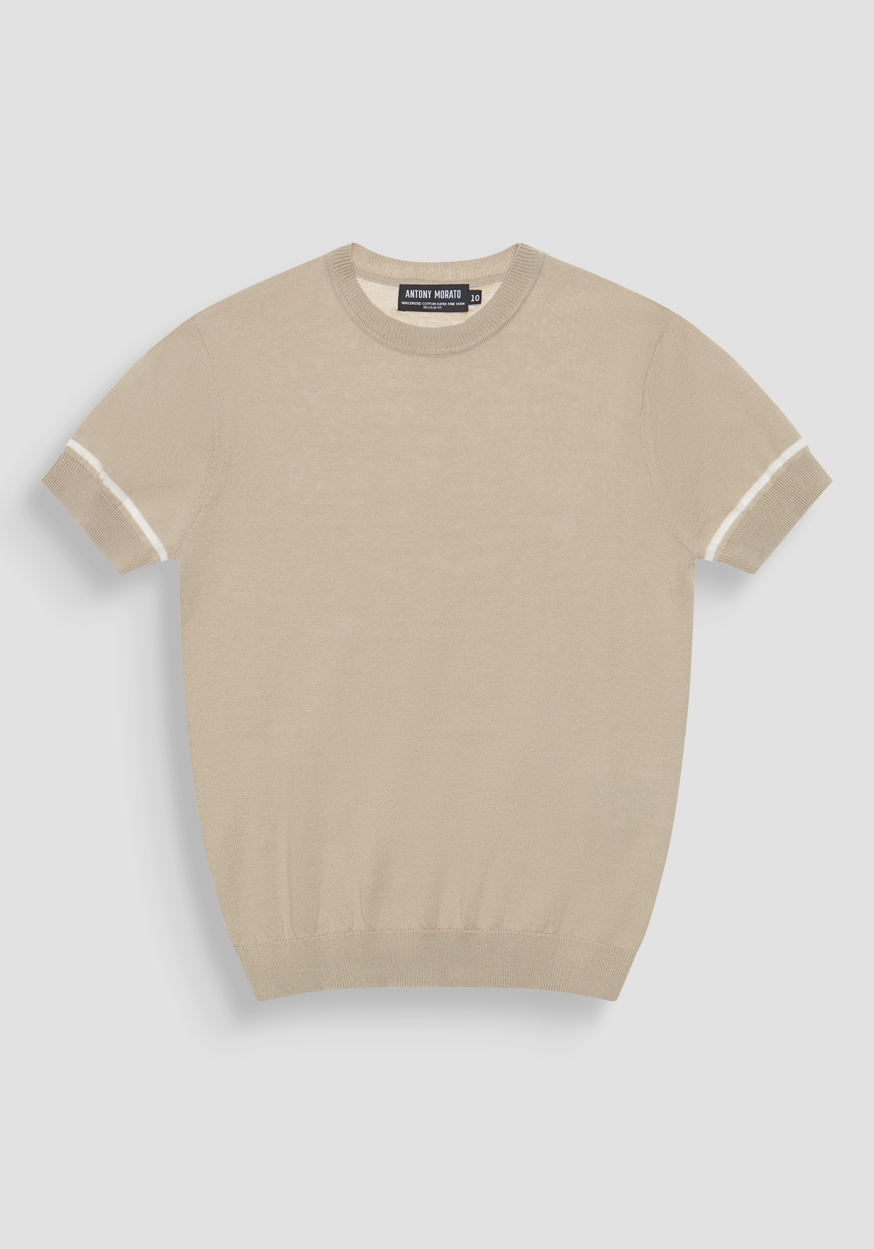 Maglia sotto giacca in cotone tinta unita con rigo bianco sulla mezza manica