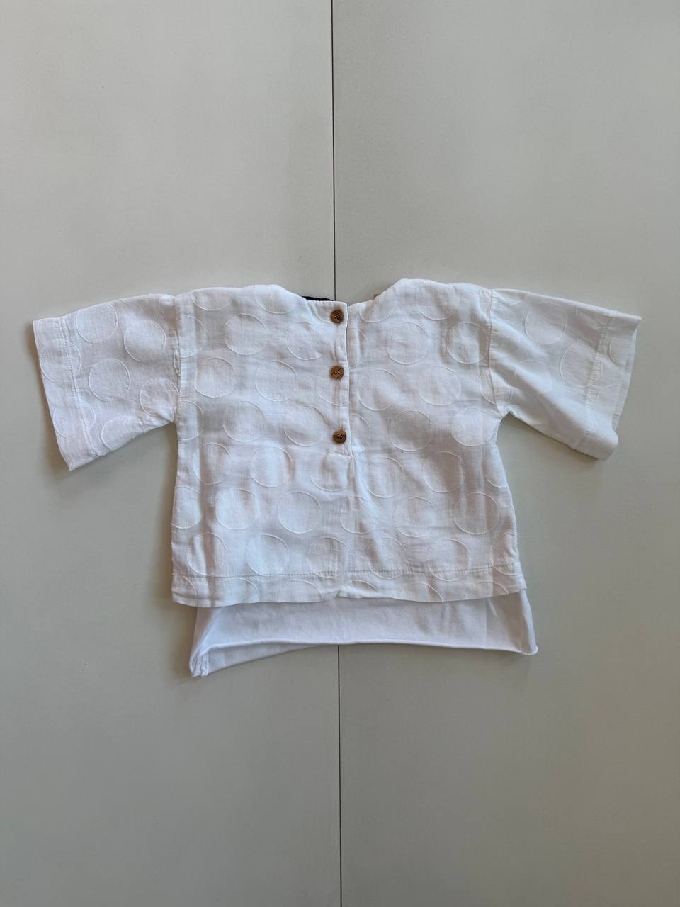 Camicione modello largo a pois con maniche a tre quarti. Con canotta in cotone che fuoriesce