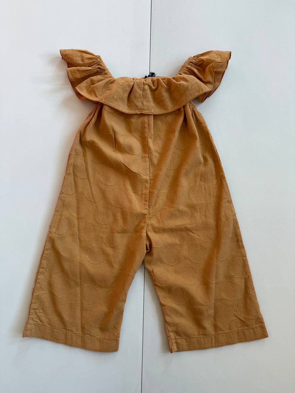 Tutina lunga larga con pois ocra con bretelline