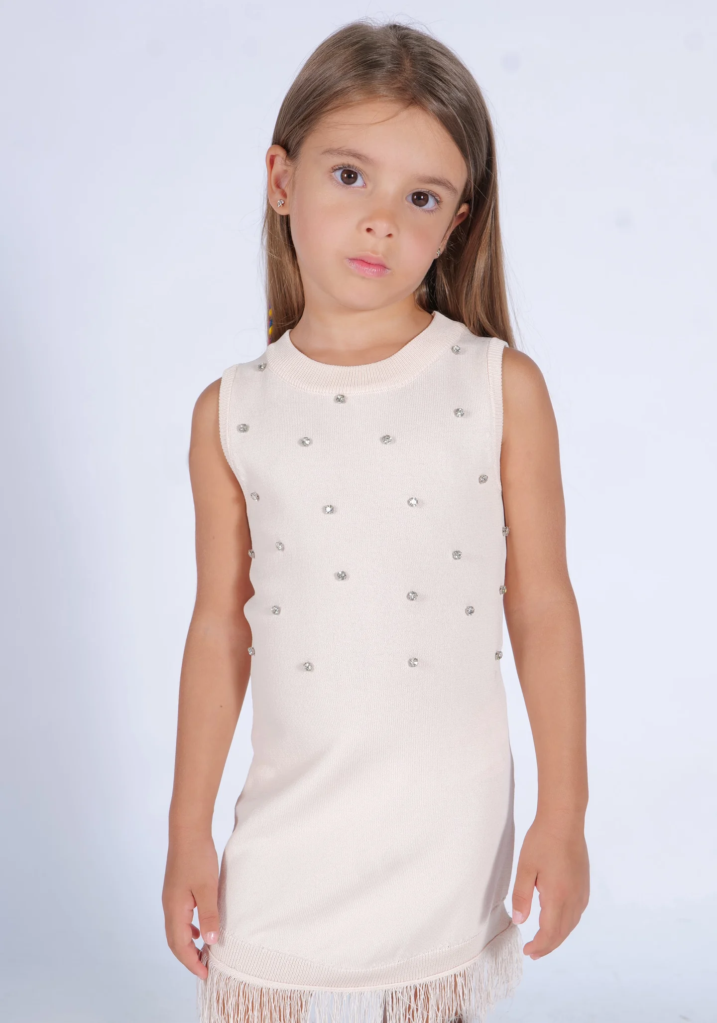 Abito elastico con brillantini e frange