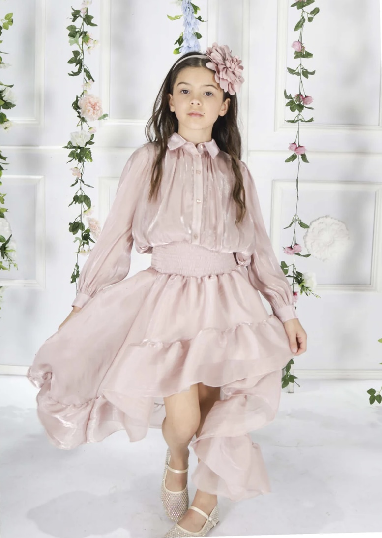 Camicia corta in taffetà rosa antico