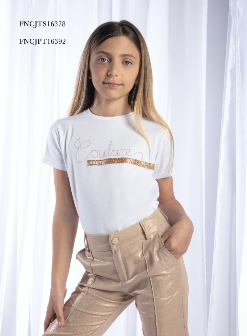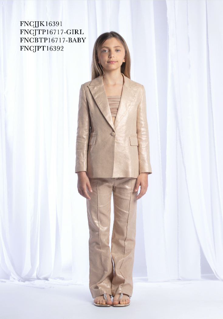 Pantalone lungo elegante cotone e lino con regolatore interno color oro