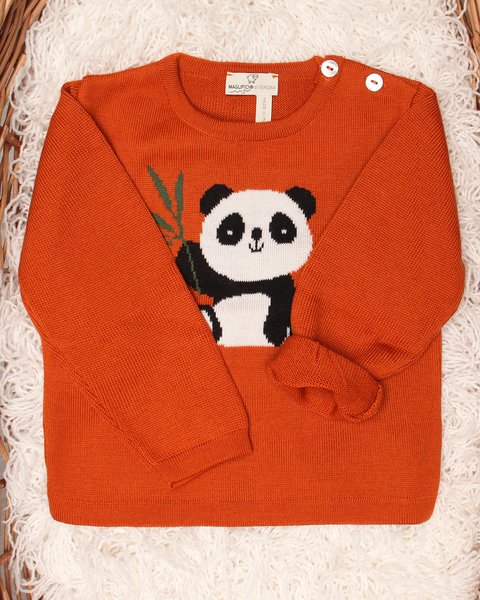 Maglioncino panda 100% lana BIO con abbottonatura sulla spalla
