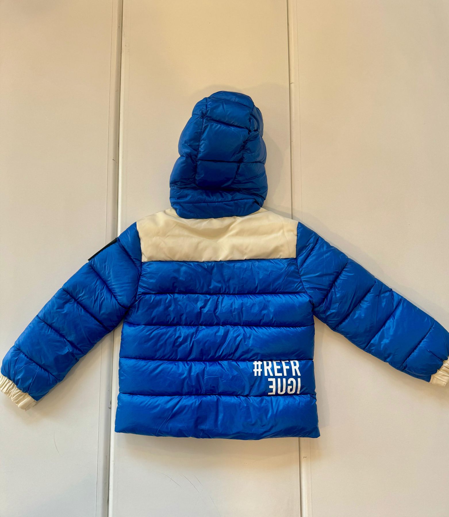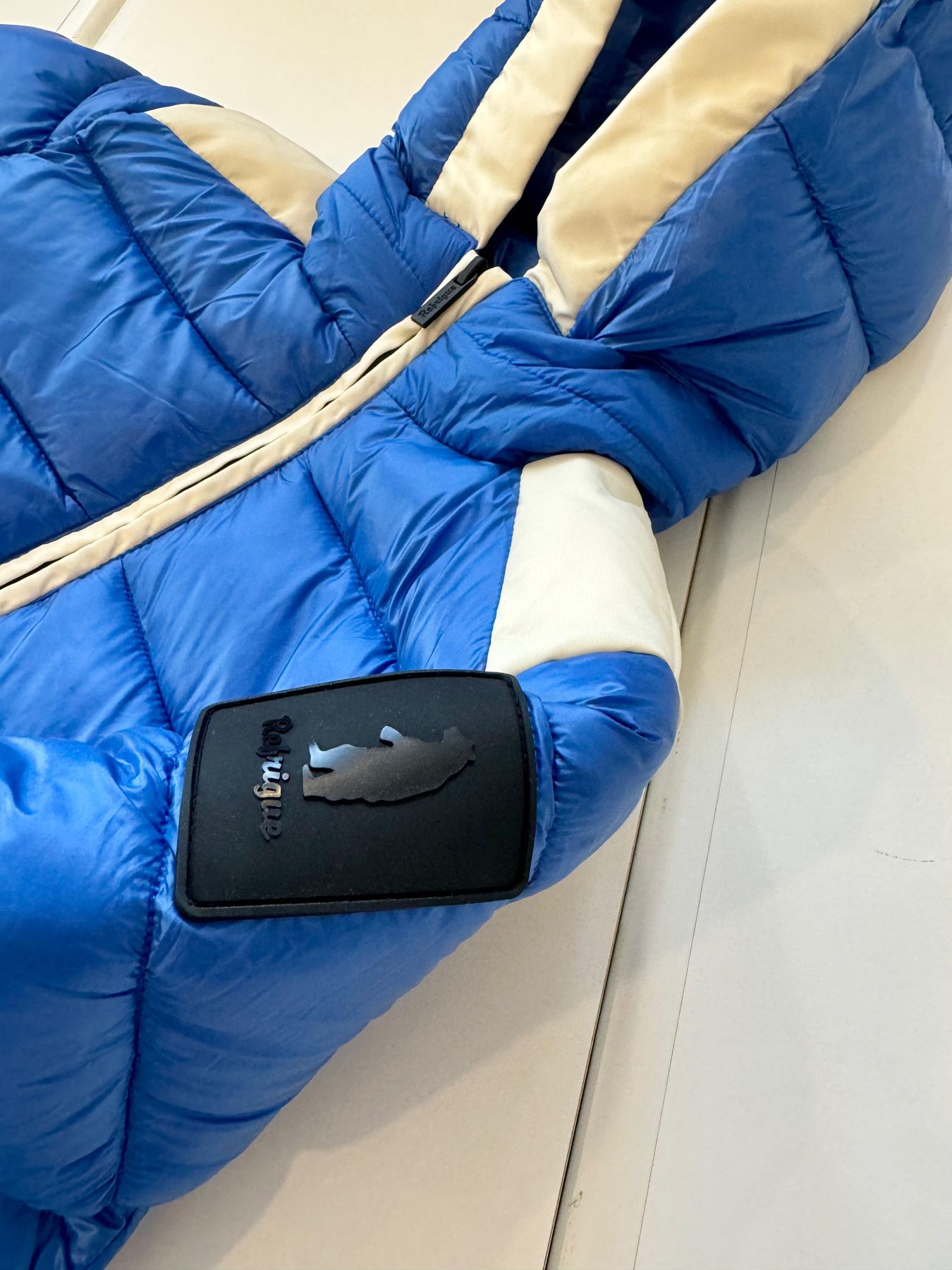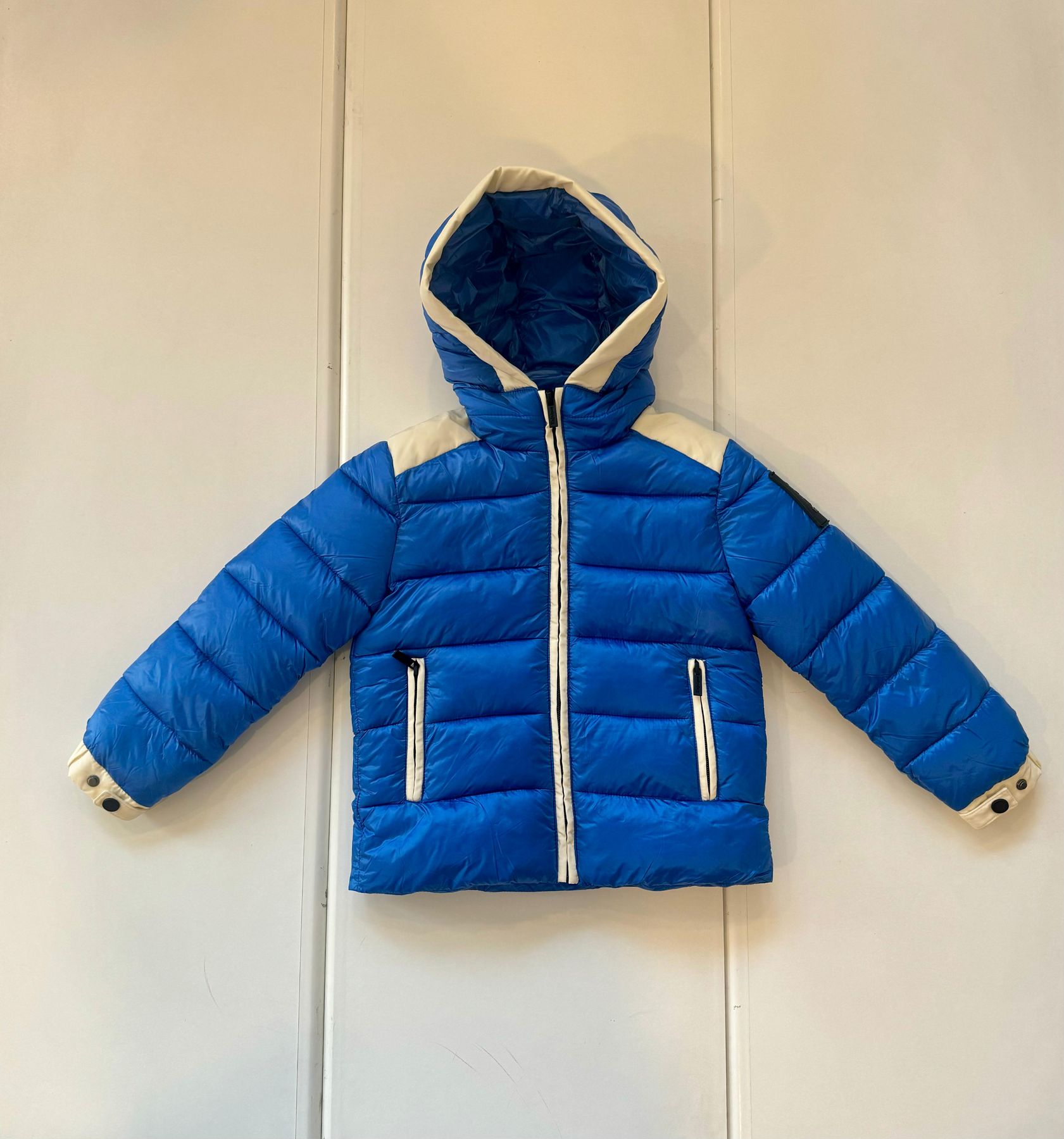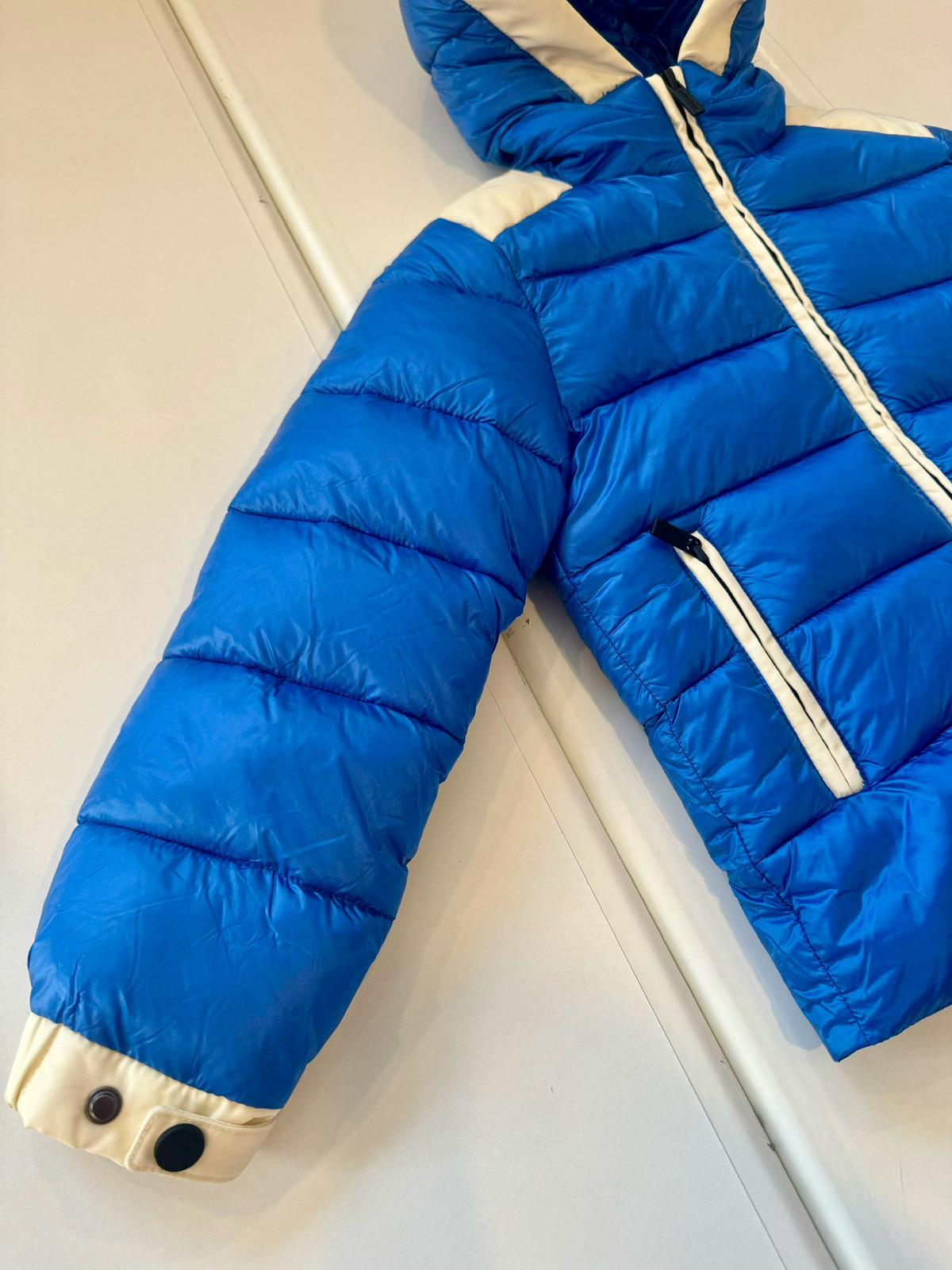 Giubbino royal e bianco con cappuccio e tasche con la cerniera